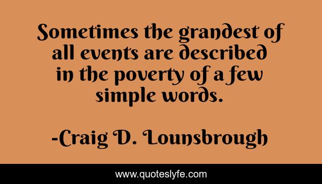 This page presents the quote "Sometimes the grandest of all events are described in the poverty of a few simple words.". Author of this quote is Craig D. Lounsbrough. .