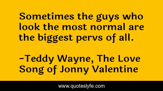 This page presents the quote "Sometimes the guys who look the most normal are the biggest pervs of all.". Author of this quote is Teddy Wayne, The Love Song of Jonny Valentine. This quote is about child-abuse, stalkers, perverts,.
