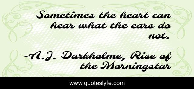 This page presents the quote "Sometimes the heart can hear what the ears do not.". Author of this quote is A.J. Darkholme, Rise of the Morningstar. This quote is about heart, perception, self-awareness, observation, hear, ears,.