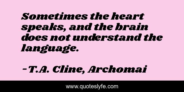 "T.A. Cline, Archomai Quotes." Quoteslyfe.com, 2025. Sat. 06 Dec. 2025. <https://www.quoteslyfe.com/quote/Sometimes-the-heart-speaks-and-the-brain-63817>.