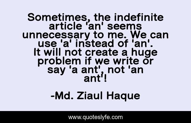 "Md. Ziaul Haque Quotes." Quoteslyfe.com, 2025. Fri. 05 Dec. 2025. <https://www.quoteslyfe.com/quote/Sometimes-the-indefinite-article-an-seems-unnecessary-216318>.