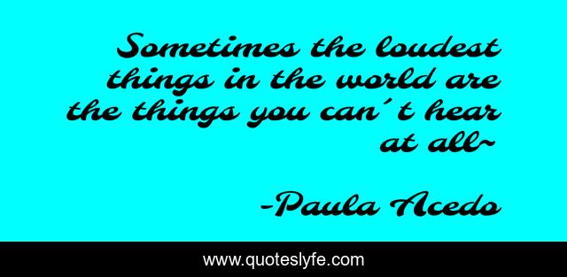 This page presents the quote "Sometimes the loudest things in the world are the things you can´t hear at all~". Author of this quote is Paula Acedo. This quote is about world, sometimes, deaf, quiet, loudest,.
