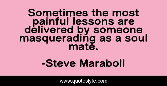 This page presents the quote "Sometimes the most painful lessons are delivered by someone masquerading as a soul mate.". Author of this quote is Steve Maraboli. This quote is about lessons, relationships, love, affection, soul-mate,.