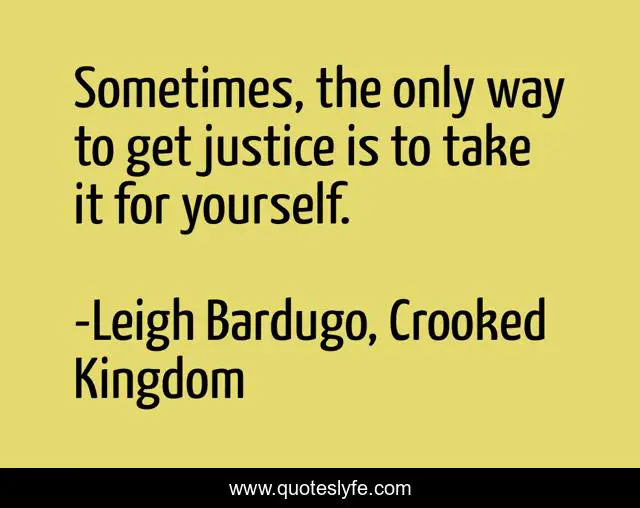 "Leigh Bardugo, Crooked Kingdom Quotes." Quoteslyfe.com, 2025. Sat. 06 Dec. 2025. <https://www.quoteslyfe.com/quote/Sometimes-the-only-way-to-get-justice-176358>.