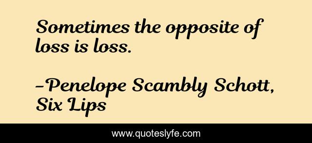 "Penelope Scambly Schott, Six Lips Quotes." Quoteslyfe.com, 2025. Fri. 05 Dec. 2025. <https://www.quoteslyfe.com/quote/Sometimes-the-opposite-of-loss-is-loss-122486>.