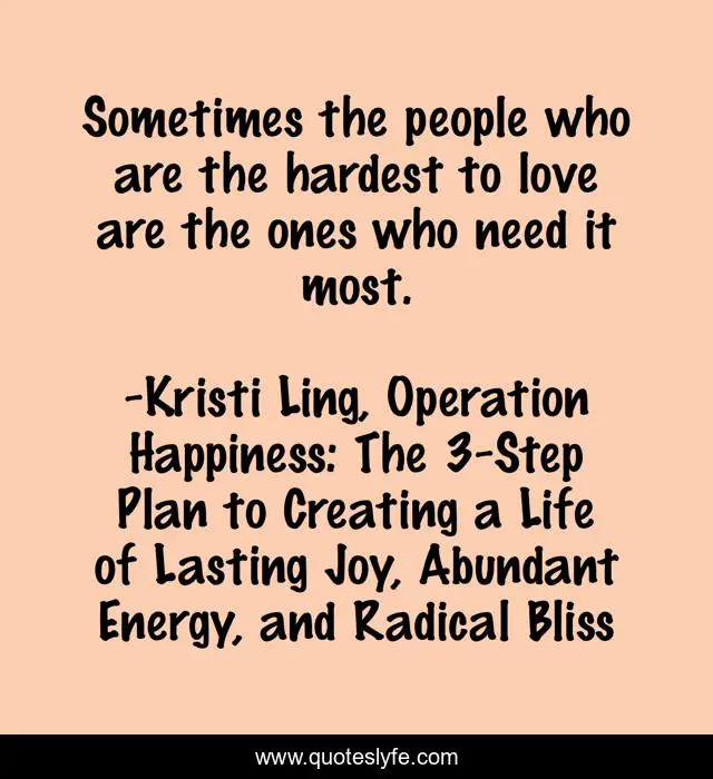 "Kristi Ling, Operation Happiness: The 3-Step Plan to Creating a Life of Lasting Joy, Abundant Energy, and Radical Bliss Quotes." Quoteslyfe.com, 2025. Fri. 05 Dec. 2025. <https://www.quoteslyfe.com/quote/Sometimes-the-people-who-are-the-hardest-135094>.