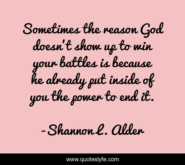 "Shannon L. Alder Quotes." Quoteslyfe.com, 2025. Tue. 30 Dec. 2025. <https://www.quoteslyfe.com/quote/Sometimes-the-reason-God-doesn-t-show-65091>.