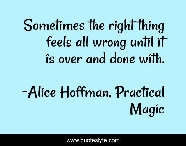 This page presents the quote "Sometimes the right thing feels all wrong until it is over and done with.". Author of this quote is Alice Hoffman, Practical Magic. .