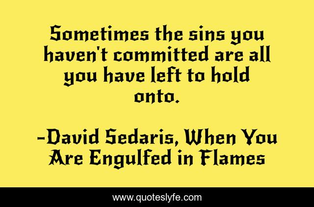 "David Sedaris, When You Are Engulfed in Flames Quotes." Quoteslyfe.com, 2025. Mon. 08 Dec. 2025. <https://www.quoteslyfe.com/quote/Sometimes-the-sins-you-haven-t-committed-5542>.