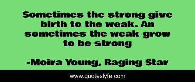 "Moira Young, Raging Star Quotes." Quoteslyfe.com, 2025. Mon. 08 Dec. 2025. <https://www.quoteslyfe.com/quote/Sometimes-the-strong-give-birth-to-the-246597>.