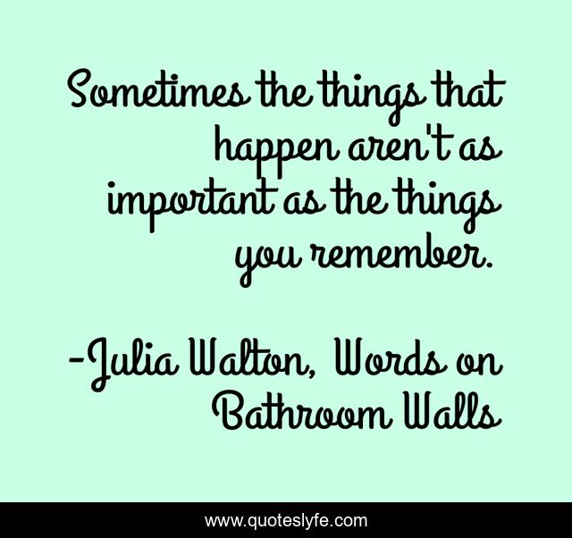 This page presents the quote "Sometimes the things that happen aren't as important as the things you remember.". Author of this quote is Julia Walton, Words on Bathroom Walls. .