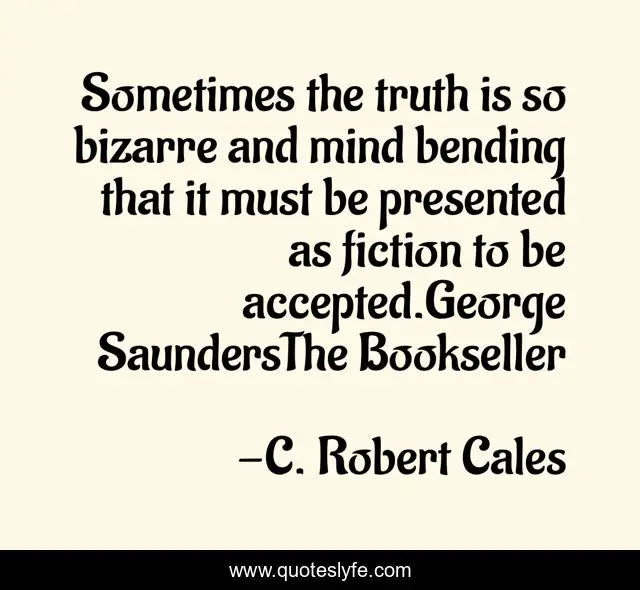 This page presents the quote "Sometimes the truth is so bizarre and mind bending that it must be presented as fiction to be accepted.George SaundersThe Bookseller". Author of this quote is C. Robert Cales. This quote is about horror, paranormal-thriller,.