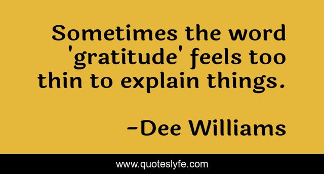 "Dee Williams Quotes." Quoteslyfe.com, 2025. Mon. 08 Dec. 2025. <https://www.quoteslyfe.com/quote/Sometimes-the-word-gratitude-feels-too-thin-180389>.