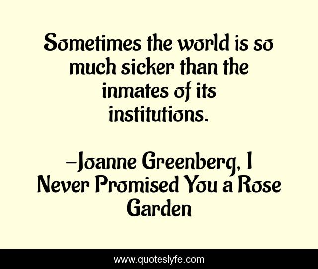 "Joanne Greenberg, I Never Promised You a Rose Garden Quotes." Quoteslyfe.com, 2025. Sun. 07 Dec. 2025. <https://www.quoteslyfe.com/quote/Sometimes-the-world-is-so-much-sicker-103987>.