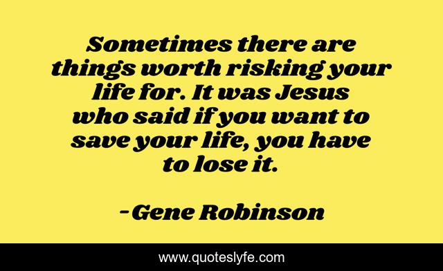 This page presents the quote "Sometimes there are things worth risking your life for. It was Jesus who said if you want to save your life, you have to lose it.". Author of this quote is Gene Robinson. .