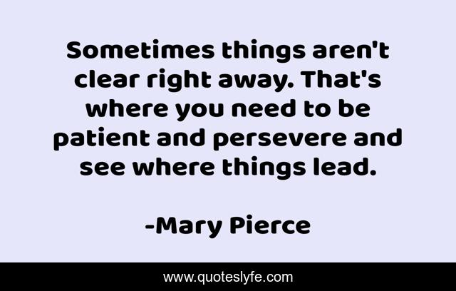 This page presents the quote "Sometimes things aren't clear right away. That's where you need to be patient and persevere and see where things lead.". Author of this quote is Mary Pierce. This quote is about see, right,.