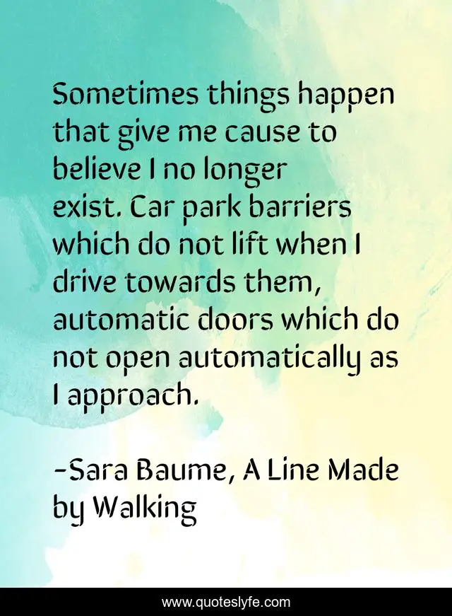 "Sara Baume, A Line Made by Walking Quotes." Quoteslyfe.com, 2025. Fri. 05 Dec. 2025. <https://www.quoteslyfe.com/quote/Sometimes-things-happen-that-give-me-cause-226535>.