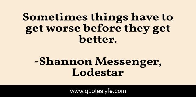 This page presents the quote "Sometimes things have to get worse before they get better.". Author of this quote is Shannon Messenger, Lodestar. This quote is about shannon-messenger, keefe-sencen, sadness, keeper-of-the-lost-cities, love-this-boy,.
