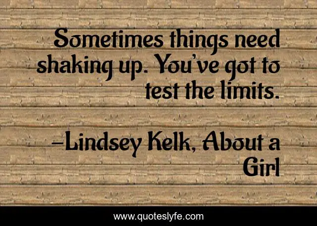This page presents the quote "Sometimes things need shaking up. You’ve got to test the limits.". Author of this quote is Lindsey Kelk, About a Girl. This quote is about life, love, romantic, photographer, hilarious, hawaii, impersonate, adventure, escape,.