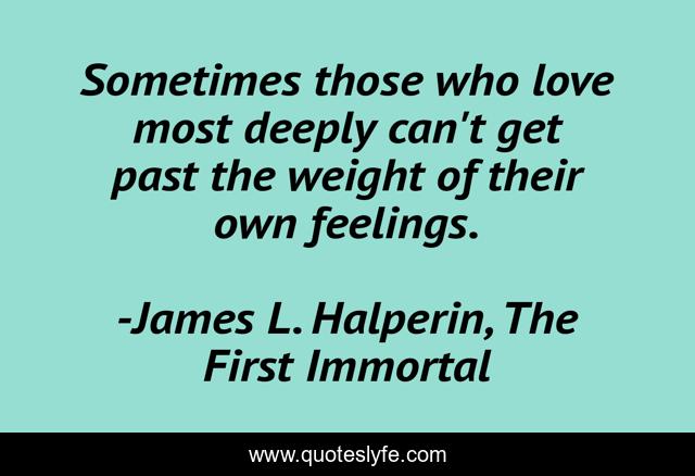 This page presents the quote "Sometimes those who love most deeply can't get past the weight of their own feelings.". Author of this quote is James L. Halperin, The First Immortal. This quote is about observant, compassionate, wise, understanding,.
