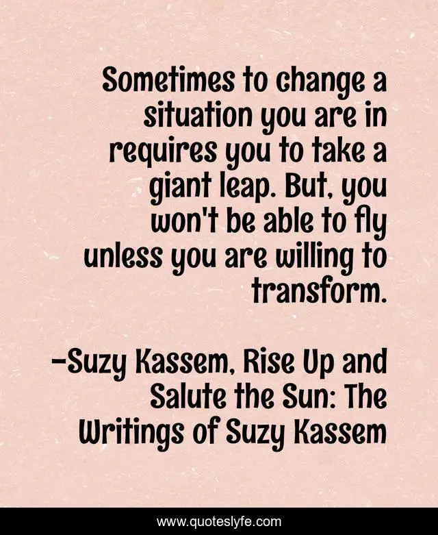 "Suzy Kassem, Rise Up and Salute the Sun: The Writings of Suzy Kassem Quotes." Quoteslyfe.com, 2025. Sun. 07 Dec. 2025. <https://www.quoteslyfe.com/quote/Sometimes-to-change-a-situation-you-are-47604>.