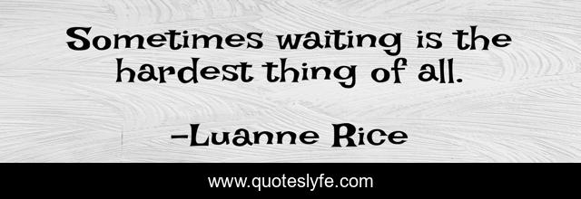 This page presents the quote "Sometimes waiting is the hardest thing of all.". Author of this quote is Luanne Rice. .
