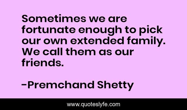 This page presents the quote "Sometimes we are fortunate enough to pick our own extended family. We call them as our friends.". Author of this quote is Premchand Shetty. .