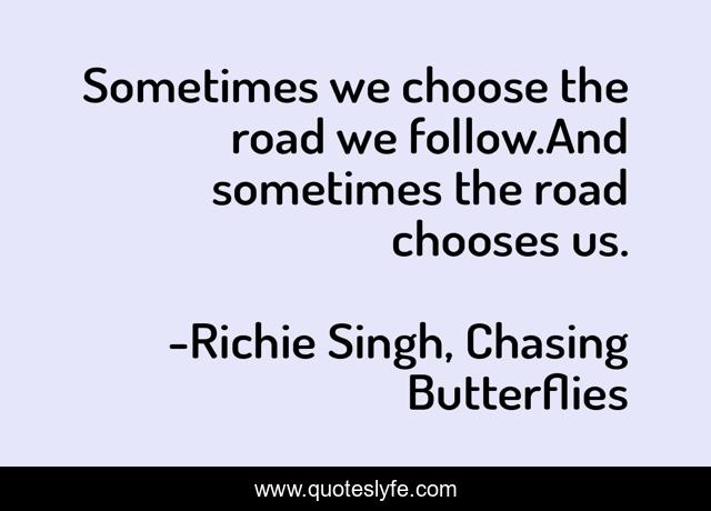 "Richie Singh, Chasing Butterflies Quotes." Quoteslyfe.com, 2025. Sun. 07 Dec. 2025. <https://www.quoteslyfe.com/quote/Sometimes-we-choose-the-road-we-follow-130048>.