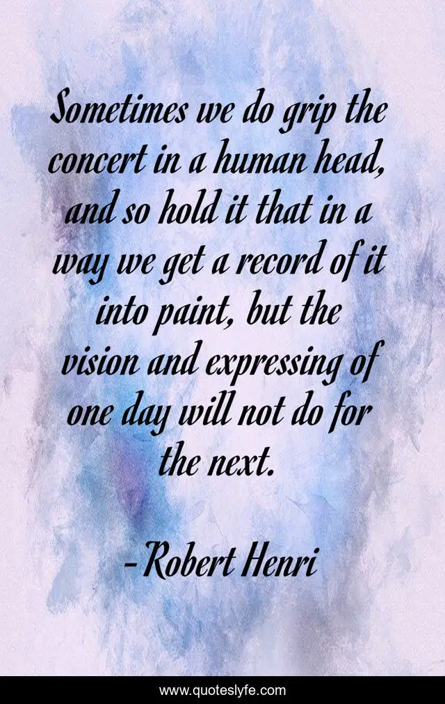 This page presents the quote "Sometimes we do grip the concert in a human head, and so hold it that in a way we get a record of it into paint, but the vision and expressing of one day will not do for the next.". Author of this quote is Robert Henri. This quote is about perception, art,.