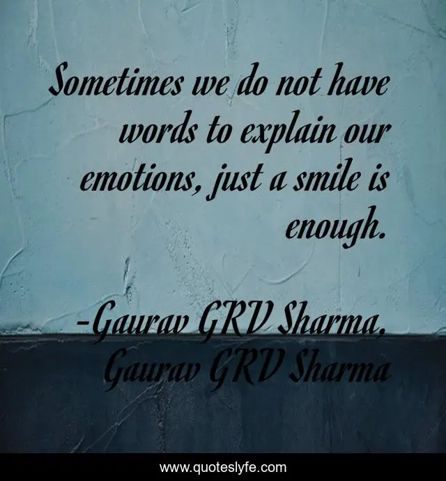 This page presents the quote "Sometimes we do not have words to explain our emotions, just a smile is enough.". Author of this quote is Gaurav GRV Sharma, Gaurav GRV Sharma. This quote is about just, explain, sometimes, emotions, words, smile, happiness,.