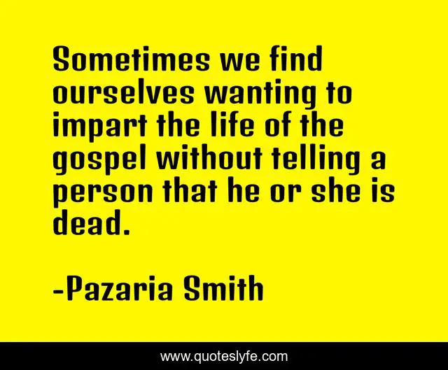 This page presents the quote "Sometimes we find ourselves wanting to impart the life of the gospel without telling a person that he or she is dead.". Author of this quote is Pazaria Smith. This quote is about life, impartation, salvation, jesus,.