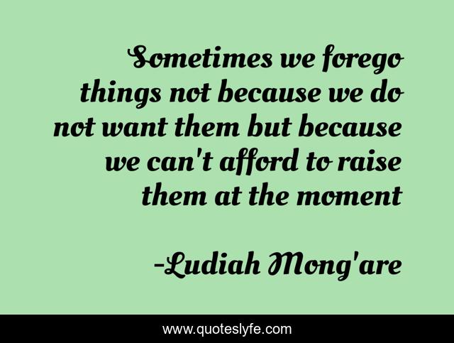 This page presents the quote "Sometimes we forego things not because we do not want them but because we can't afford to raise them at the moment". Author of this quote is Ludiah Mong'are. .