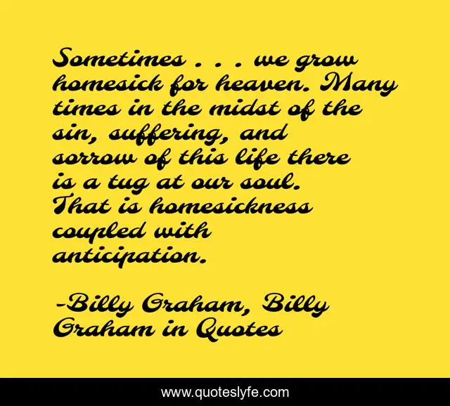 "Billy Graham, Billy Graham in Quotes Quotes." Quoteslyfe.com, 2025. Sat. 06 Dec. 2025. <https://www.quoteslyfe.com/quote/Sometimes-we-grow-homesick-for-heaven-Many-152404>.