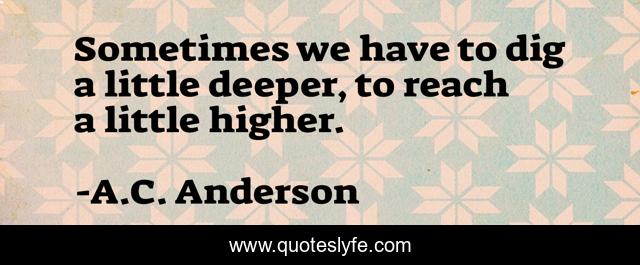 This page presents the quote "Sometimes we have to dig a little deeper, to reach a little higher.". Author of this quote is A.C. Anderson. This quote is about perseverance, life, growth, strength, achievement,.