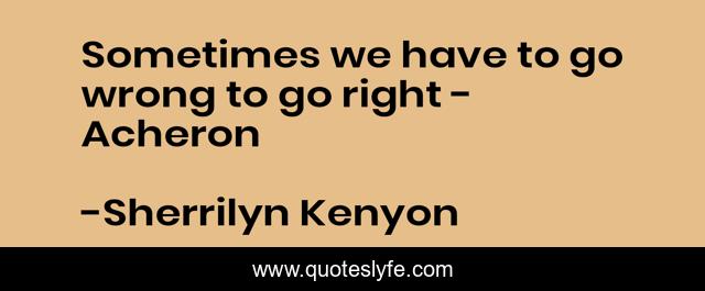 This page presents the quote "Sometimes we have to go wrong to go right - Acheron". Author of this quote is Sherrilyn Kenyon. This quote is about enthusiasm, immortality, inspirational,.