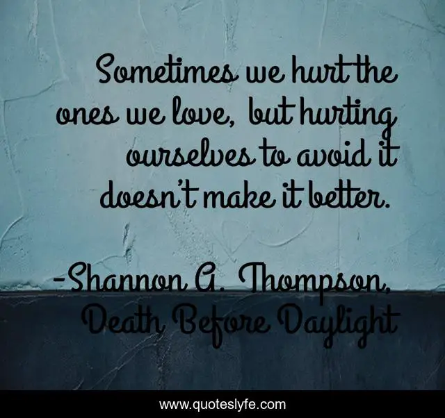 "Shannon A. Thompson, Death Before Daylight Quotes." Quoteslyfe.com, 2025. Sun. 07 Dec. 2025. <https://www.quoteslyfe.com/quote/Sometimes-we-hurt-the-ones-we-love-75624>.