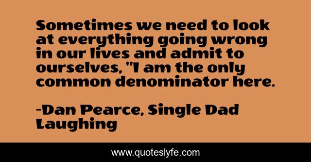 This page presents the quote "Sometimes we need to look at everything going wrong in our lives and admit to ourselves, "I am the only common denominator here.". Author of this quote is Dan Pearce, Single Dad Laughing. This quote is about changing-ourselves, self-realization, common-denominators, making-change,.