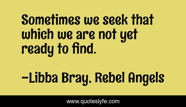 This page presents the quote "Sometimes we seek that which we are not yet ready to find.". Author of this quote is Libba Bray, Rebel Angels. This quote is about fantasy, young-adult,.
