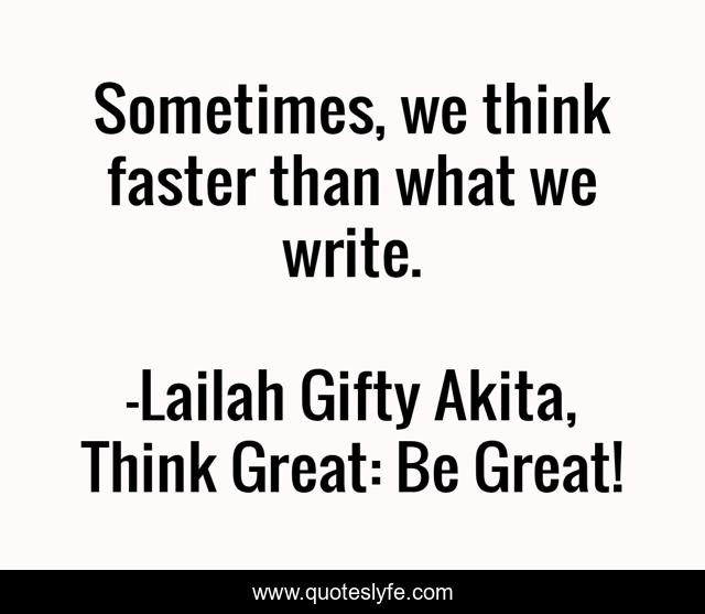 "Lailah Gifty Akita, Think Great: Be Great! Quotes." Quoteslyfe.com, 2025. Fri. 05 Dec. 2025. <https://www.quoteslyfe.com/quote/Sometimes-we-think-faster-than-what-we-137938>.