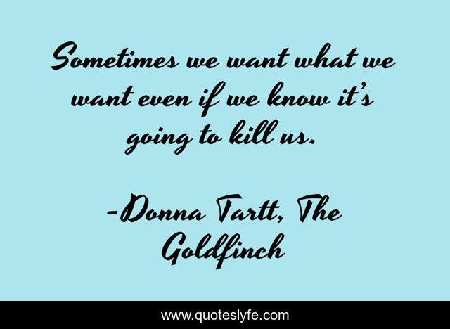 This page presents the quote "Sometimes we want what we want even if we know it’s going to kill us.". Author of this quote is Donna Tartt, The Goldfinch. This quote is about self-destruction, wanting,.