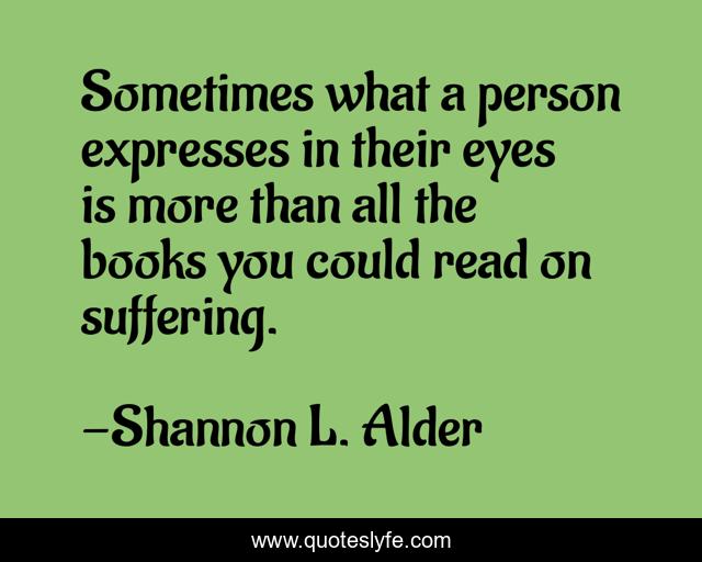 This page presents the quote "Sometimes what a person expresses in their eyes is more than all the books you could read on suffering.". Author of this quote is Shannon L. Alder. This quote is about illness, compassion, grief, patients, seeing-people, homeless,.