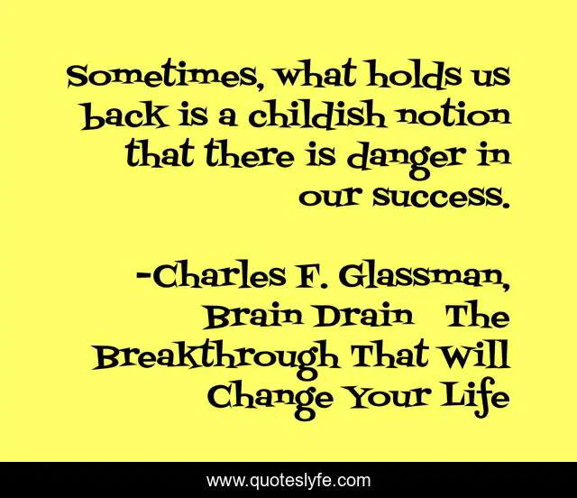 This page presents the quote "Sometimes, what holds us back is a childish notion that there is danger in our success.". Author of this quote is Charles F. Glassman, Brain Drain The Breakthrough That Will Change Your Life. .