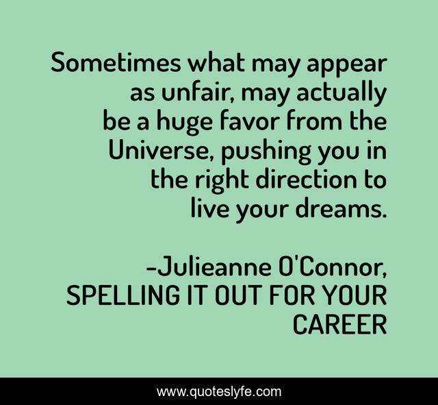 "Julieanne O'Connor, SPELLING IT OUT FOR YOUR CAREER Quotes." Quoteslyfe.com, 2025. Mon. 08 Dec. 2025. <https://www.quoteslyfe.com/quote/Sometimes-what-may-appear-as-unfair-may-49755>.