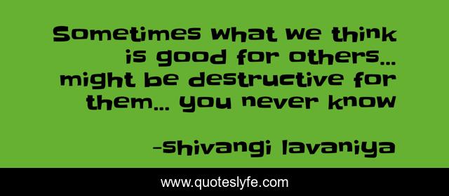 This page presents the quote "Sometimes what we think is good for others... might be destructive for them... you never know". Author of this quote is shivangi lavaniya. This quote is about good, destructive,.
