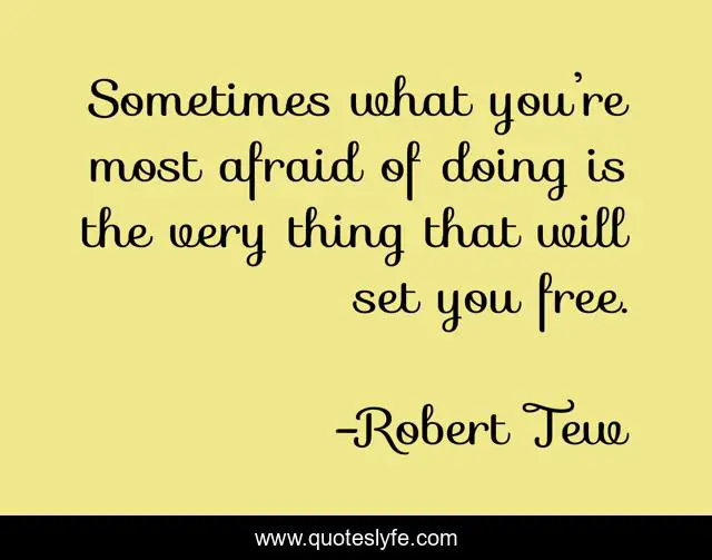 This page presents the quote "Sometimes what you’re most afraid of doing is the very thing that will set you free.". Author of this quote is Robert Tew. This quote is about fearless, fear, afraid, life, free,.