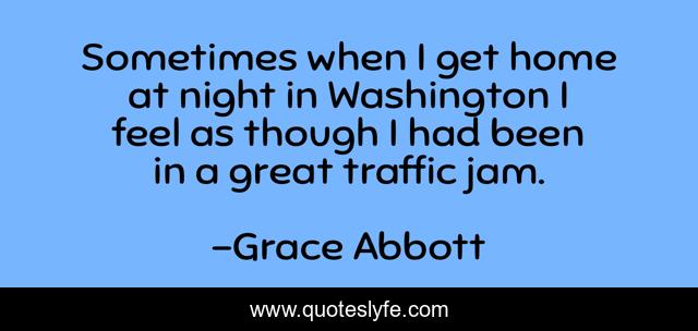 This page presents the quote "Sometimes when I get home at night in Washington I feel as though I had been in a great traffic jam.". Author of this quote is Grace Abbott. This quote is about great, traffic, night,.