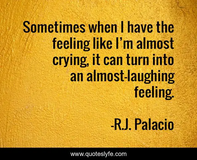 This page presents the quote "Sometimes when I have the feeling like I’m almost crying, it can turn into an almost-laughing feeling.". Author of this quote is R.J. Palacio. This quote is about sarcasm, laughing, crying, feelings,.