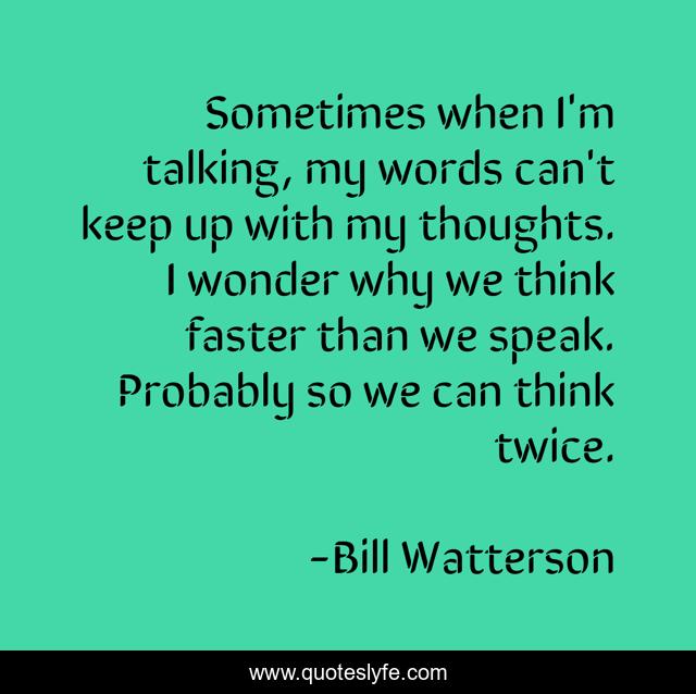 This page presents the quote "Sometimes when I'm talking, my words can't keep up with my thoughts. I wonder why we think faster than we speak. Probably so we can think twice.". Author of this quote is Bill Watterson. This quote is about calvin-and-hobbes, humor,.