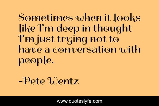 This page presents the quote "Sometimes when it looks like I'm deep in thought I'm just trying not to have a conversation with people.". Author of this quote is Pete Wentz. This quote is about pete, conversation, humor, thought, wentz,.