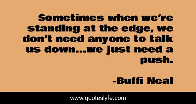 This page presents the quote "Sometimes when we’re standing at the edge, we don’t need anyone to talk us down...we just need a push.". Author of this quote is Buffi Neal. This quote is about reaching-for-your-dreams, thought-provoking,.